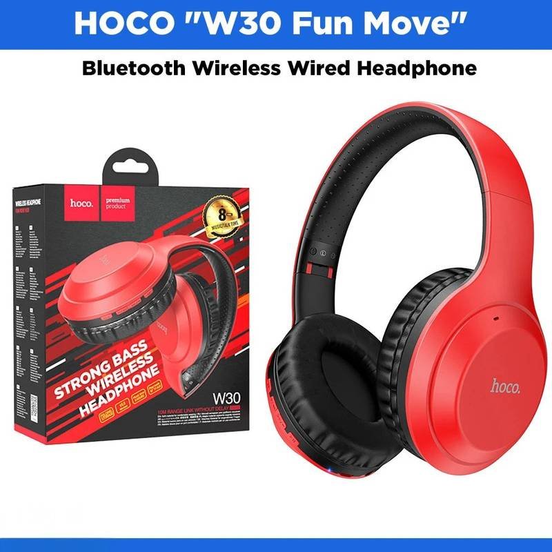 HOCO “W30 Fun Move” Bluetooth Wireless Wired Headphone – Red