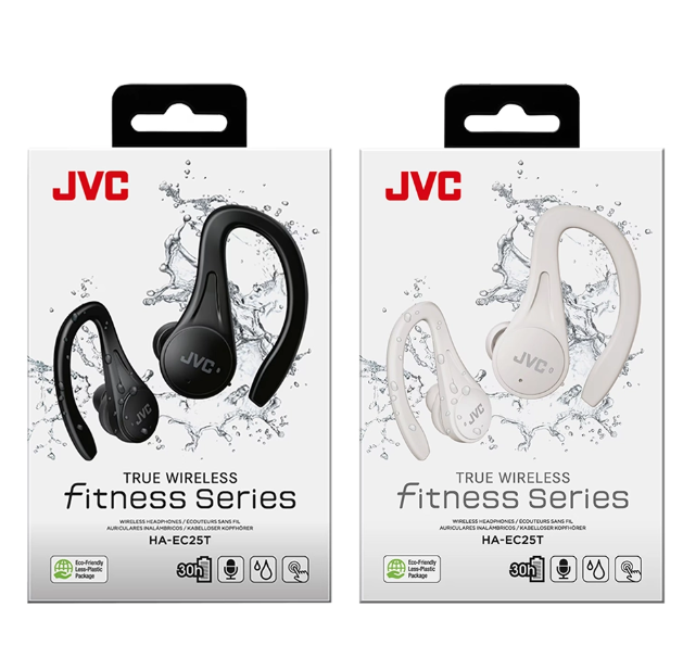 The JVC HA-EC25T Fitness Series Sports True Wireless Earbuds are designed to provide secure, high-quality audio for active users. Key features include: