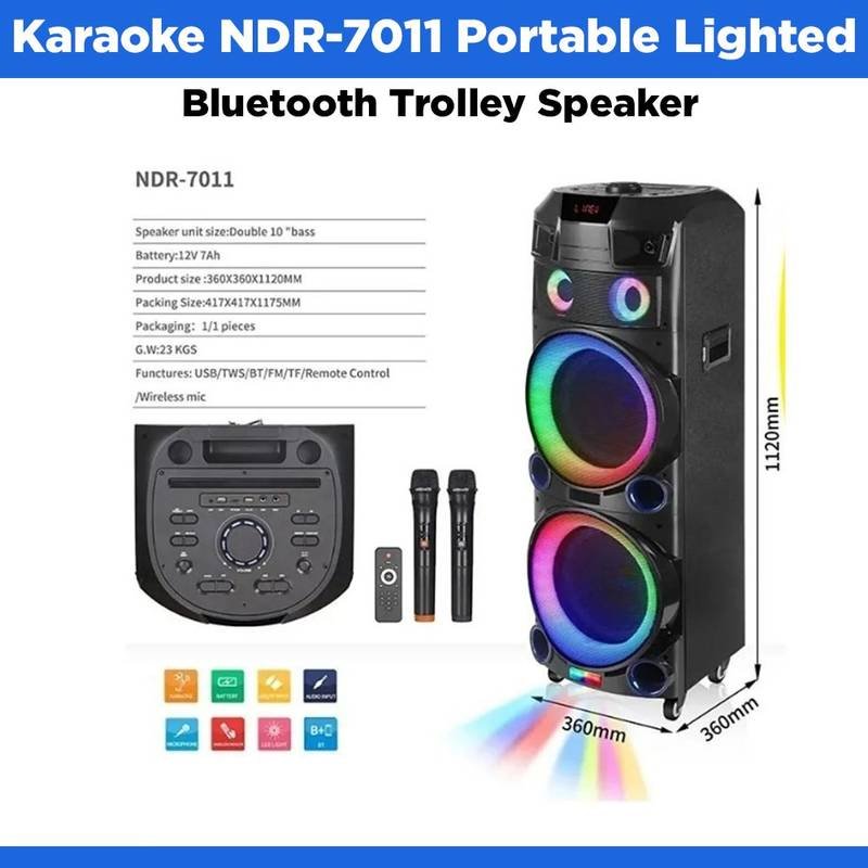 Karaoke NDR-7011 Portable Lighted Bluetooth Trolley Speaker – Black